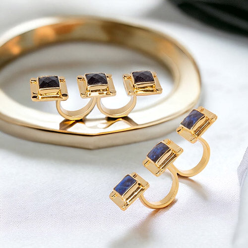 These collection seeks to celebrate the symbolism and beauty of the bindi, fusing it with elegant designs and semi-precious materials.